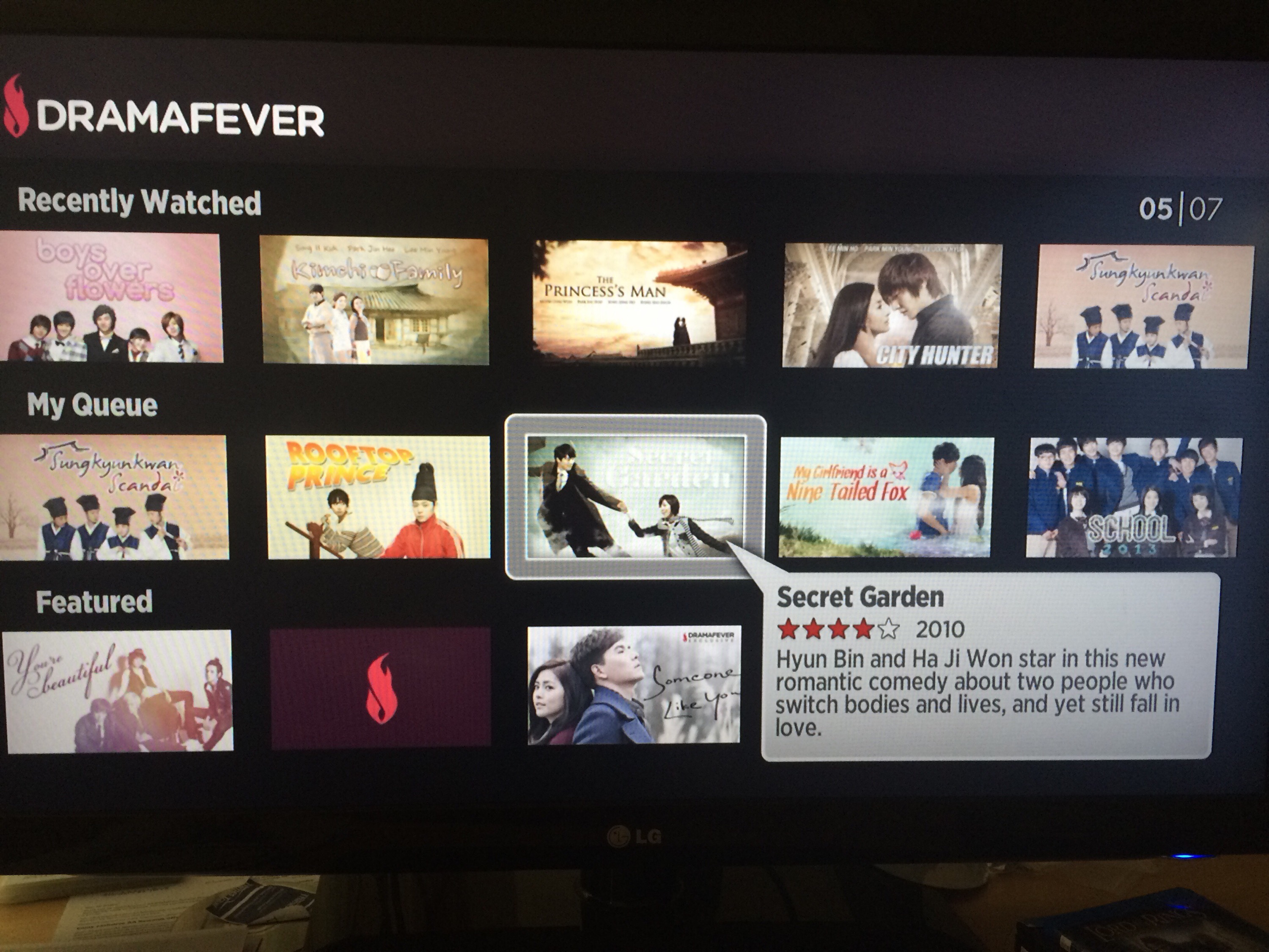DramaFever still offers a couple of benefits—HD for Premium members, and the service “remembers” how far you watched through an episode. (I nearly added, “a much better selection of 2000s-era K-drama”, but what’s the use of that, if they’re almost all unavailable to watch?)